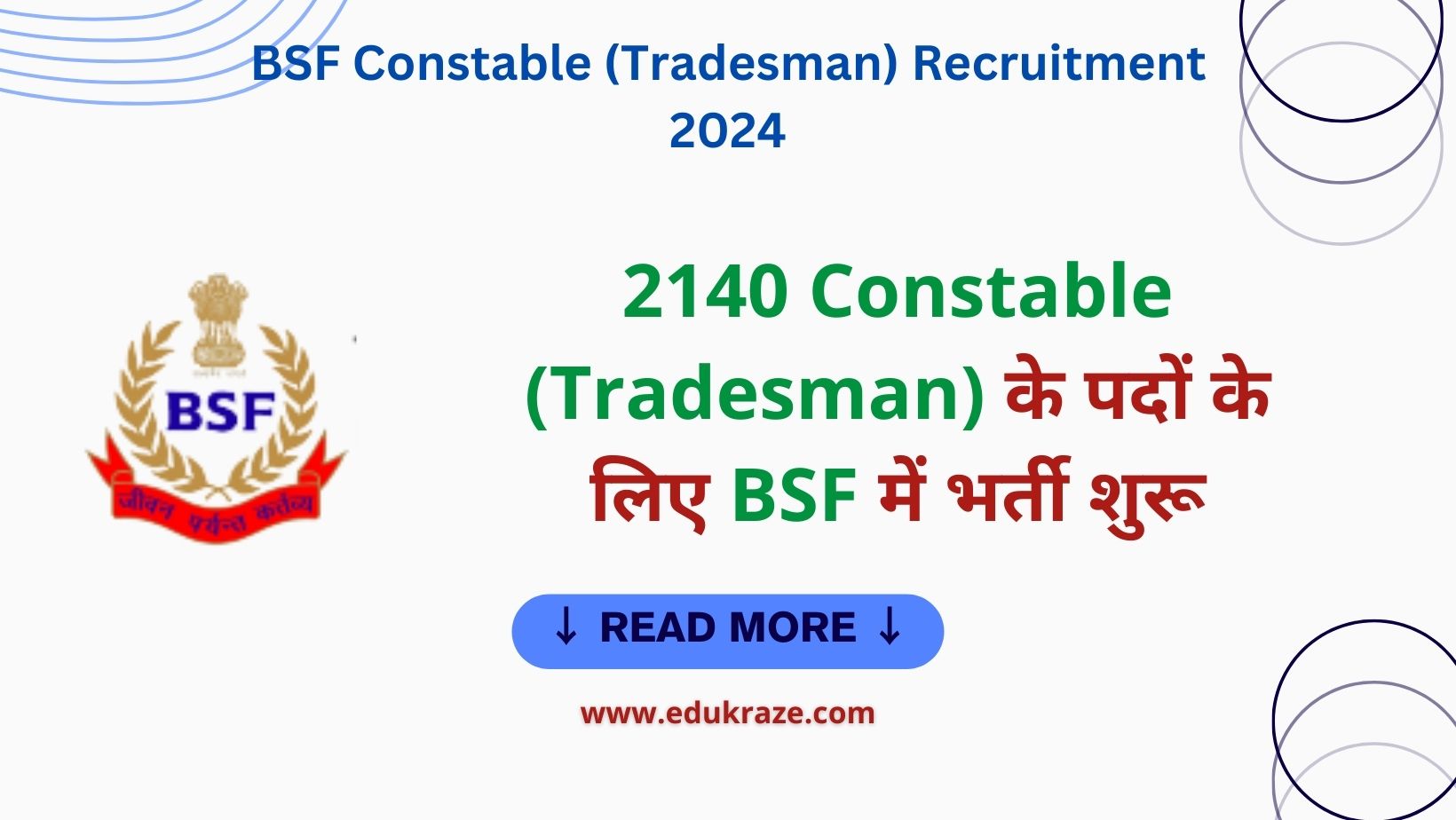 The Border Security Force (BSF) has announced 2140 vacancies for the Constable (Tradesman) post. Candidates with a 10th-grade qualification and an ITI certificate can apply online via rectt.bsf.gov.in. Check out essential details about BSF Tradesman Recruitment 2024 below.