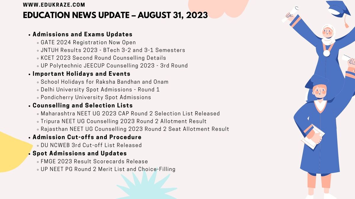 Get the latest updates on admissions, exams, holidays, and more in the education sector for August 31, 2023. Stay informed and up-to-date with the latest news.