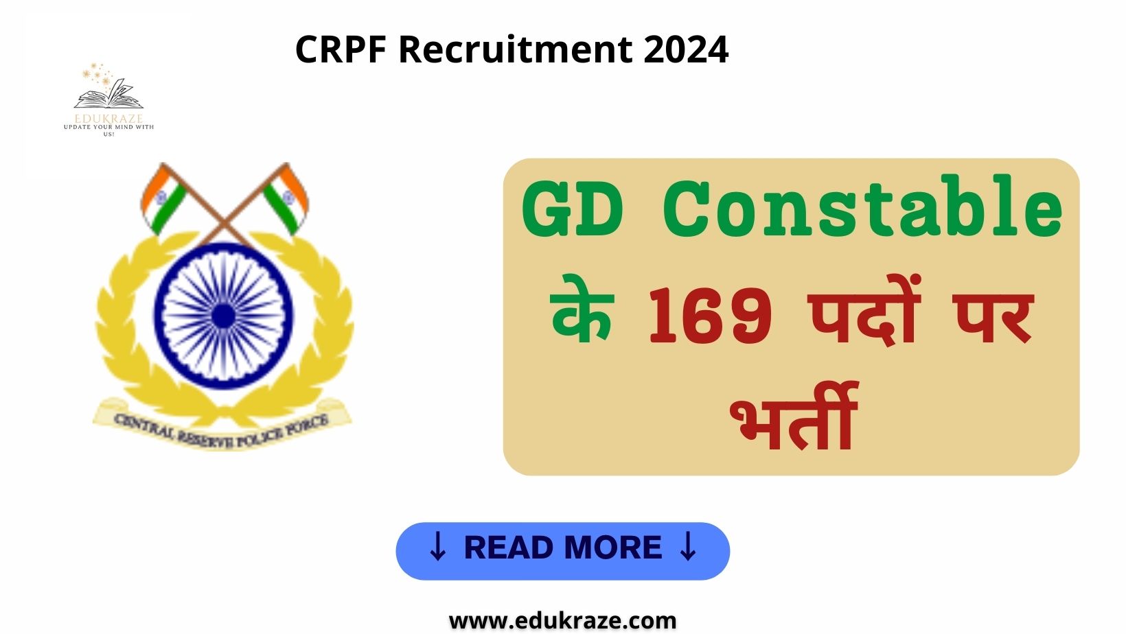 CRPF Recruitment 2024 Notification For 169 GD Constable Vacancies; Apply Online