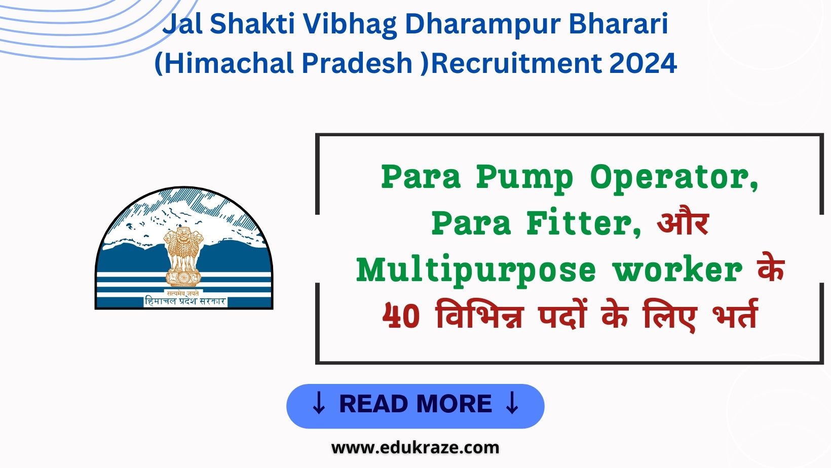 Exciting opportunities await as the HP Jal Shakti Vibhag Division Dharampur Bharari announces recruitment for 40 positions of Para Pump Operator, Para Fitter, and Multipurpose Worker. If you’re looking for a chance to contribute to the water management sector, read on to learn more about these openings and how to apply.