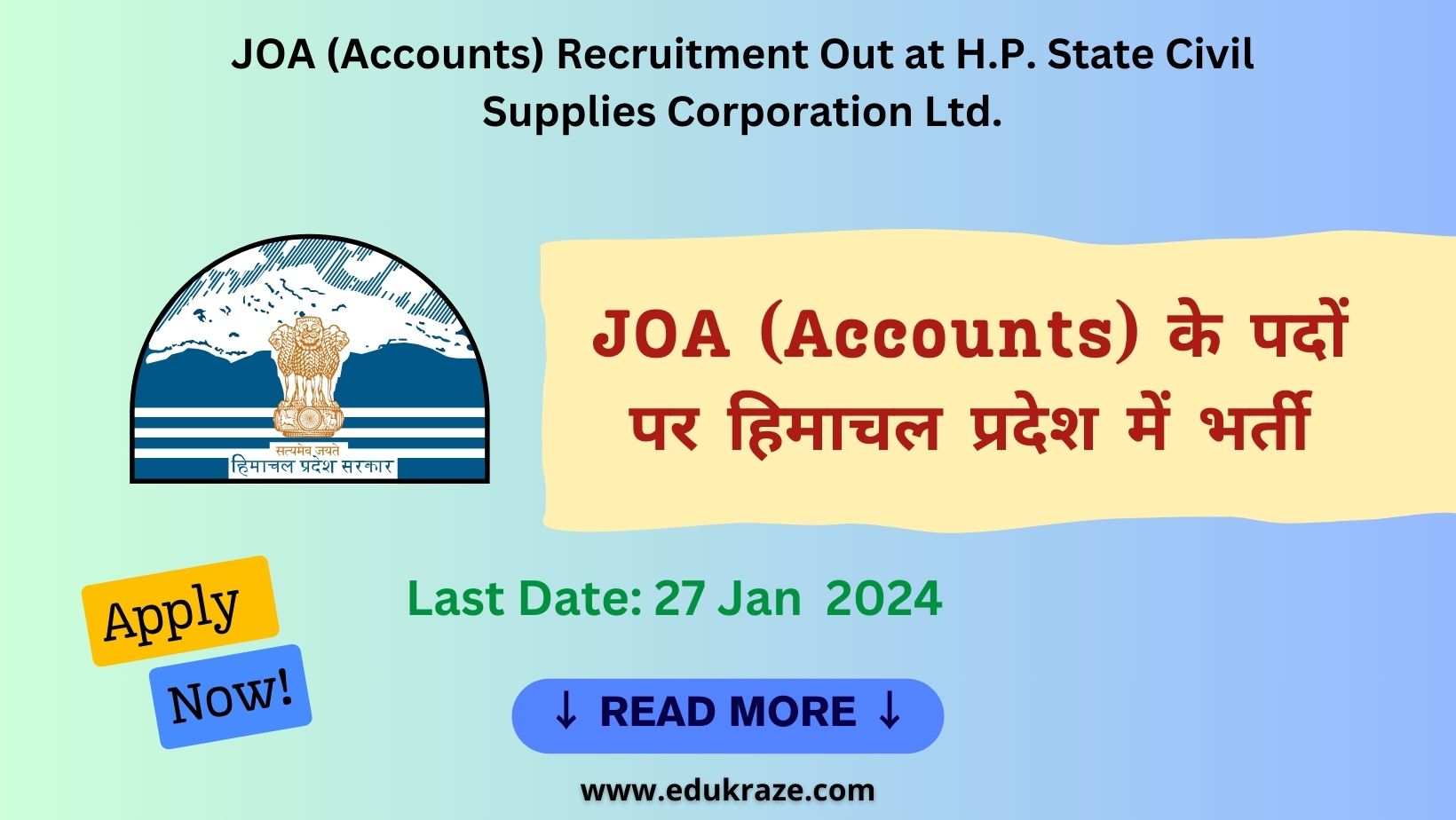 H.P. State Civil Supplies Corporation Ltd. JOA (Accounts) Recruitment 2024