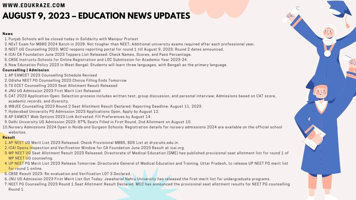 August 9, 2023 – Education News : Counselling , Admission, News, and Result